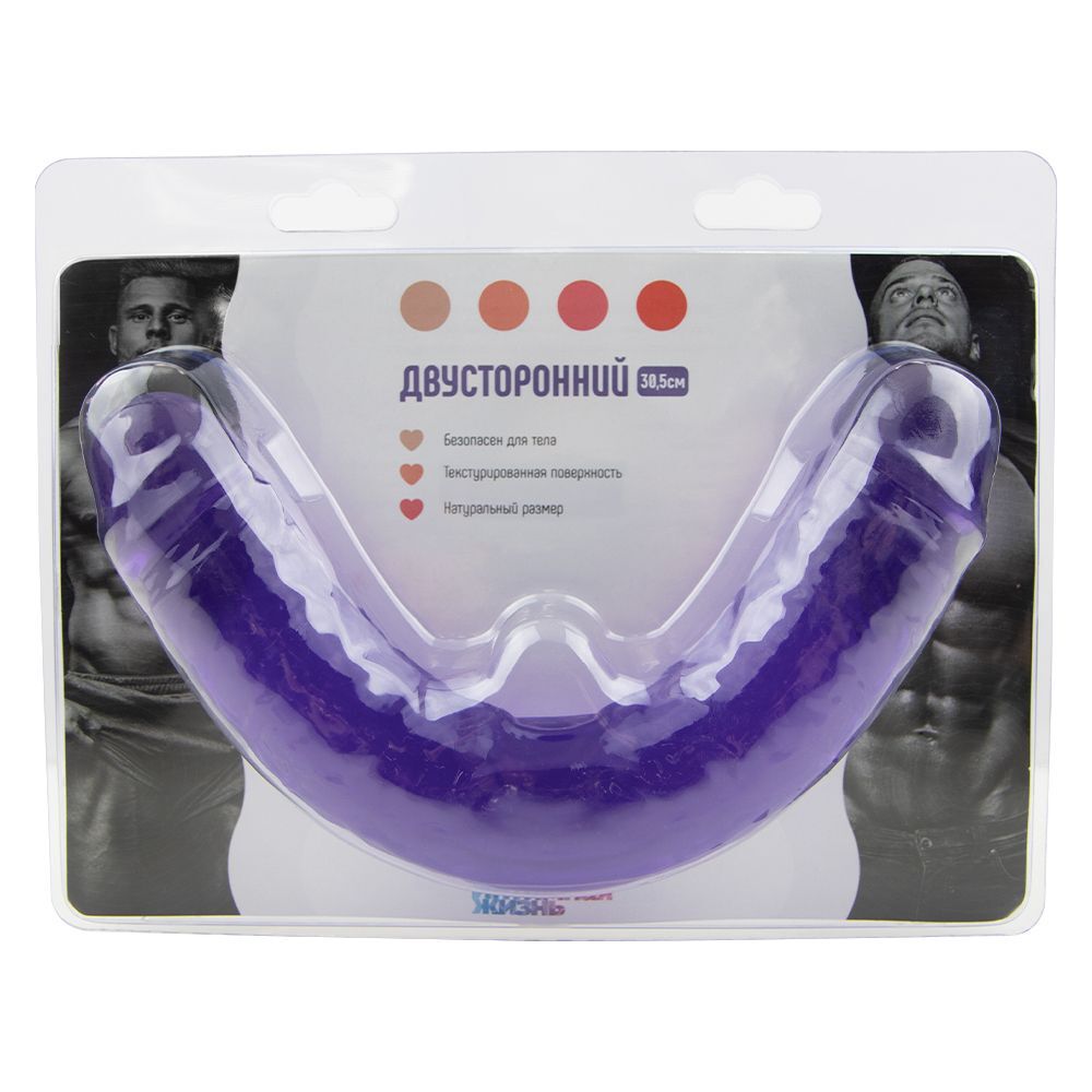 Фиолетовый двусторонний фаллоимитатор - 30,5 см.