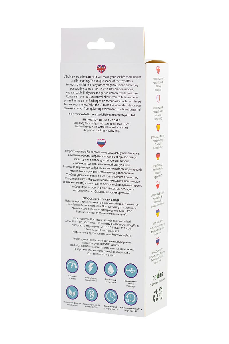 Вибростимулятор Flo сделает вашу сексуальную жизнь ярче и интереснее. Уникальная форма вибратора предлагает прикоснуться к клитору или любой другой эрогенной зоне и наслаждаться проникновенной стимуляцией. Благодаря 10 режимам вибрации вы легко найдете подходящий именно вам и получите незабываемое удовольствие. Удобное управление одной кнопкой позволяет полностью погрузиться в игру. Перезаряжаемая технология при помощи USB (в комплекте) избавит вас от постоянной покупки батареек. С вибростимулятором Flo вы с легкостью перейдете от трепетного возбуждения к ярким оргазмам! Минимальный диаметр - 2,4 см.