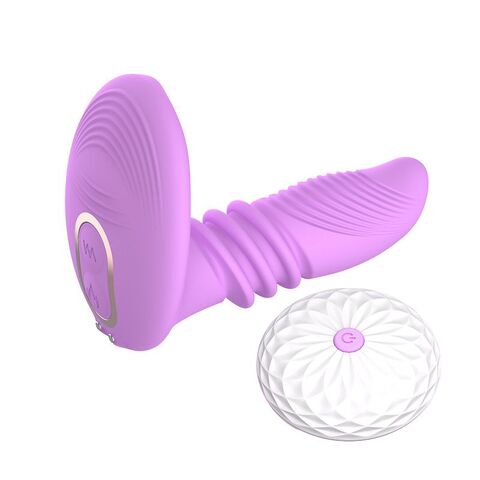 Фиолетовый массажер простаты Kimi с поступательными движениями и пультом ДУ - 13,5 см.