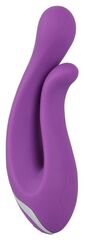 Фиолетовый перезаряжаемый вибратор Javida Double Vibe. Многофункциональный вибромассажер. Длина большого отростка - 11,5 см.