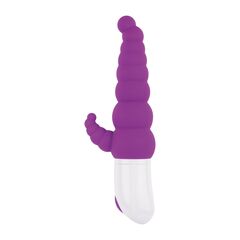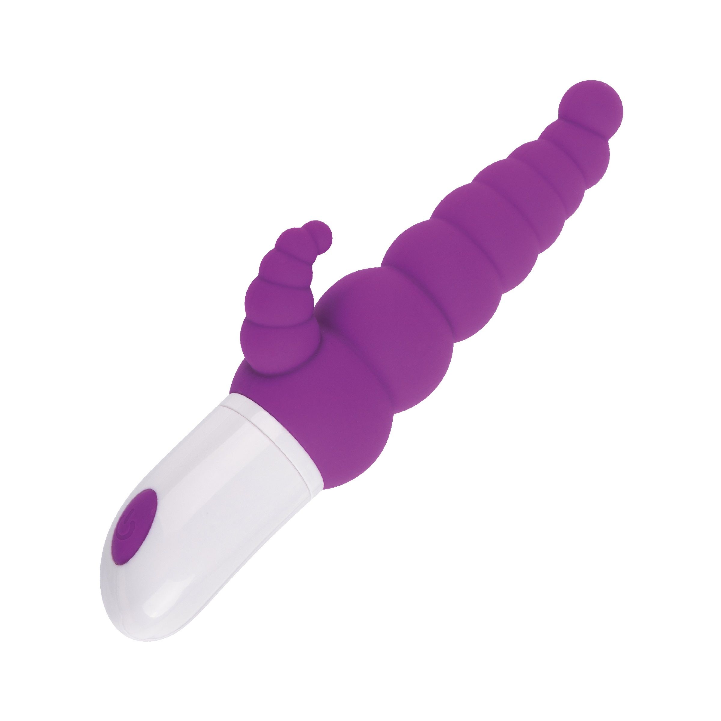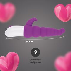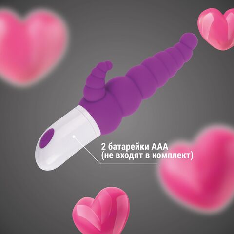 Фиолетовый ребристый вибратор с двумя точками стимуляции. 9 режимов вибрации. Водонепроницаемость IPX7 означает, что устройство можно погружать на глубину в воду до 1 метра на полчаса. Рельефный вибратор позволяет одновременно стимулировать 2 зоны. Гибкий ствол, мягкая приятная головка и маленький дополнительный отросток - отличный способ ощутить всю гамму эмоций от активной вагинальной и нежной клиторальной стимуляции. Подойдет для любого уровня чувствительности, для стимулирования самых разных эрогенных зон на своем теле или теле партнера. Изделие выполнено из качественного гипоаллергенного материала, который безопасен в использовании. Нежное покрытие обладает мягким и приятным тактильным эффектом при касании. Используйте смазку на водной основе для максимального комфорта и гладкости.