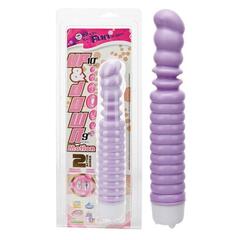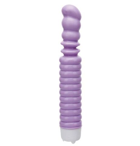 Фиолетовый ребристый вибратор с возвратно-поступательными движениями. 2 режима. Водонепроницаемый.