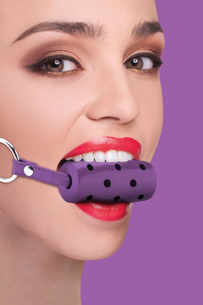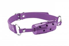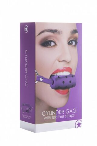 Фиолетовый резиновый кляп-цилиндр Cylinder на кожаных ремешках