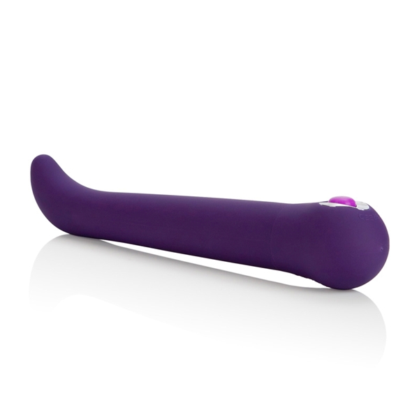 Стимулятор точки G фиолетового цвета. Изготовлен из пластика, имеющего мягкое сатиновое покрытие. Приятный на ощупь. Имеет 3 скорости вибрации и 7 режимов пульсации. Невероятно мощный виброэлемент расположен по всей длине изделия, но особо интенсивная вибрация сконцентрирована в головке для большей стимуляции. Режимы вибрации удобно переключаются при помощи кнопки, расположенной в основании. Водонепроницаемый. Выполнен в стильном дизайне, украшен серебряной вставкой у основания игрушки.