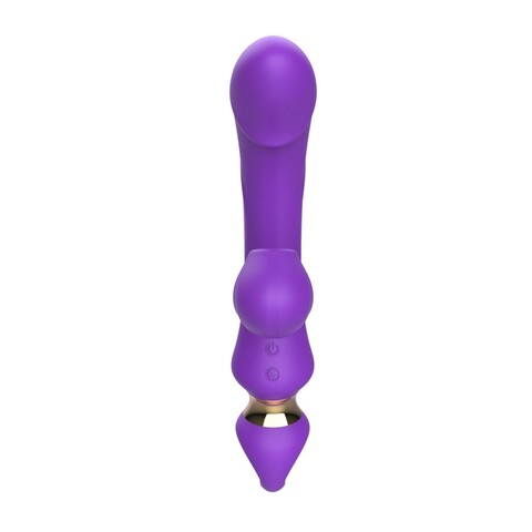 Фиолетовый вибратор-кролик с вакуумной стимуляцией клитора. 10 режимов вибрации, 10 режимов вакуума. Рабочая длина - 11,8 см.