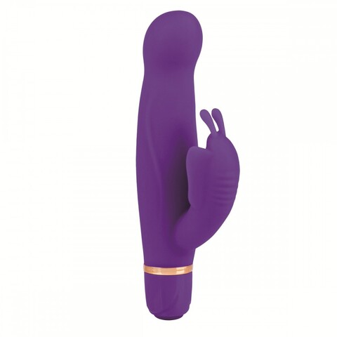 Фиолетовый вибратор с клиторальной бабочкой ENTINCE ELIZABETH. Глубина проникновения - 9,5 см.