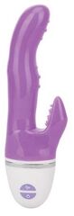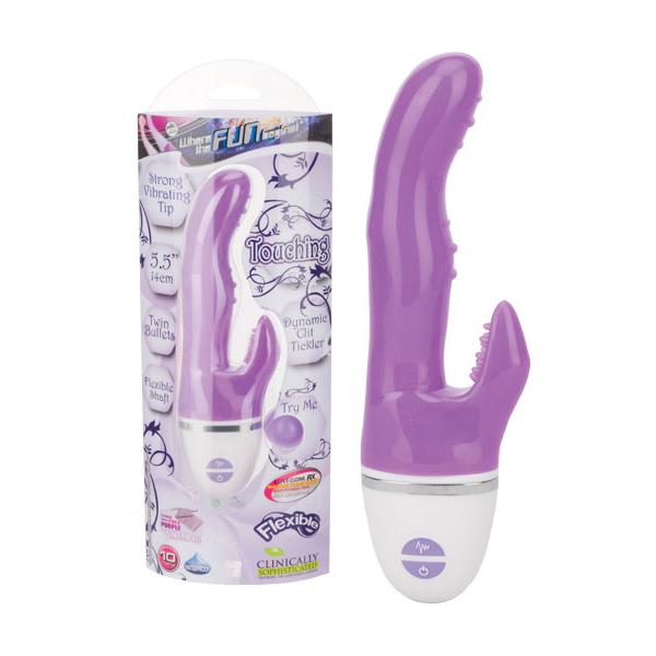 Фиолетовый вибратор с клиторальным отростком Touching. Приятный на ощупь, 10 режимов вибрации, водонепроницаемый. Рабочая длина - 14 см.