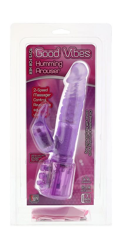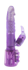 Фиолетовый вибратор с клиторальным пальчиком. Внутри вращающиеся бусины - 2 скорости вращения.