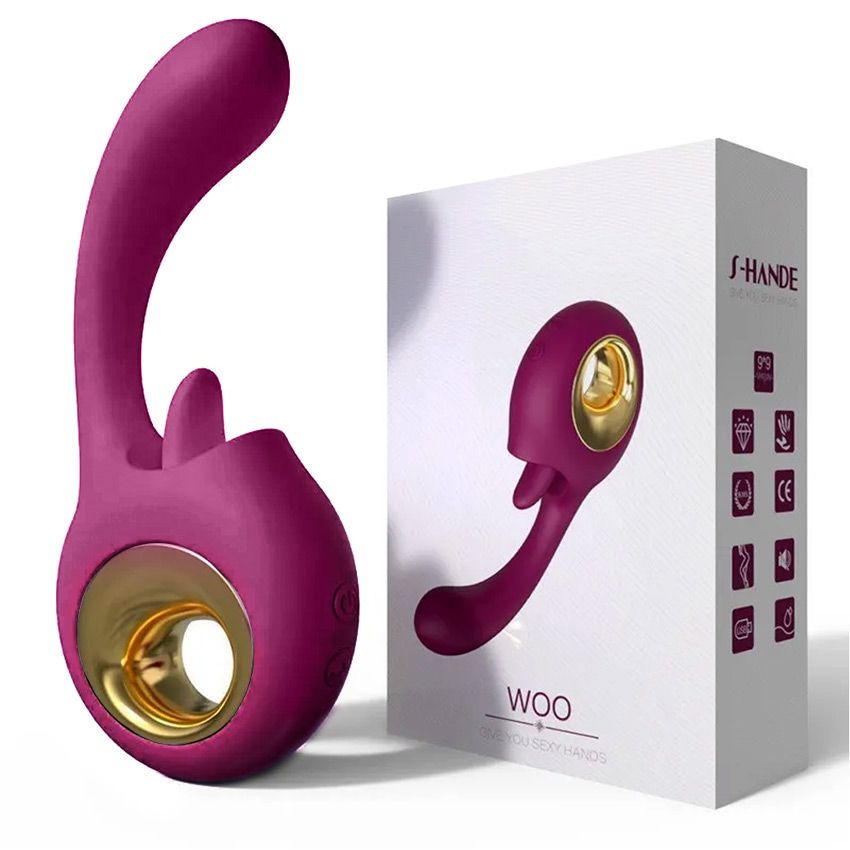 Фиолетовый вибромассажер Woo с язычком - 17,3 см.