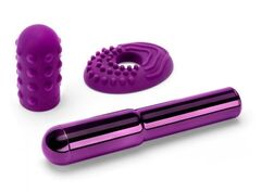 Фиолетовый жезловый вибратор Le Wand Grand Bullet с двумя нежными насадками