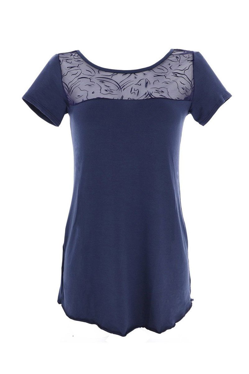 Женская футболка из микромодала с отделкой полупрозрачным эластичным кружевом.