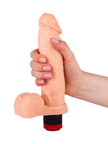 Гелевый виброфаллос с мошонкой - 19 см.