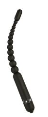 Длинный тонкий вибратор, состоящий из шариков на гибком хребте. Игрушка легко принимает любую форму, благодаря этому Вы сможете обнаружить все эрогенные зоны Вашего тела! Рукоятка вибратора украшена стразами. Также за игрушкой легко ухаживать. Шарики раздвигаются, и Вы без труда сможете вымыть изделие. Рабочая длина - 18 см.
