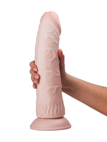 Секс-игрушка выполнена из реалистичного материала, напоминающего кожу. Мощная головка, крупные венки и упругое тело - вы будете в восторге от каждого его проникновения в женское лоно.