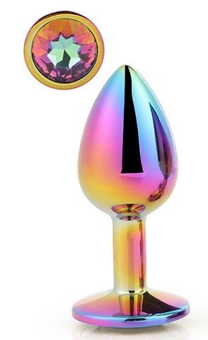 Голографическая анальная втулка с радужным кристаллом - 7,1 см.