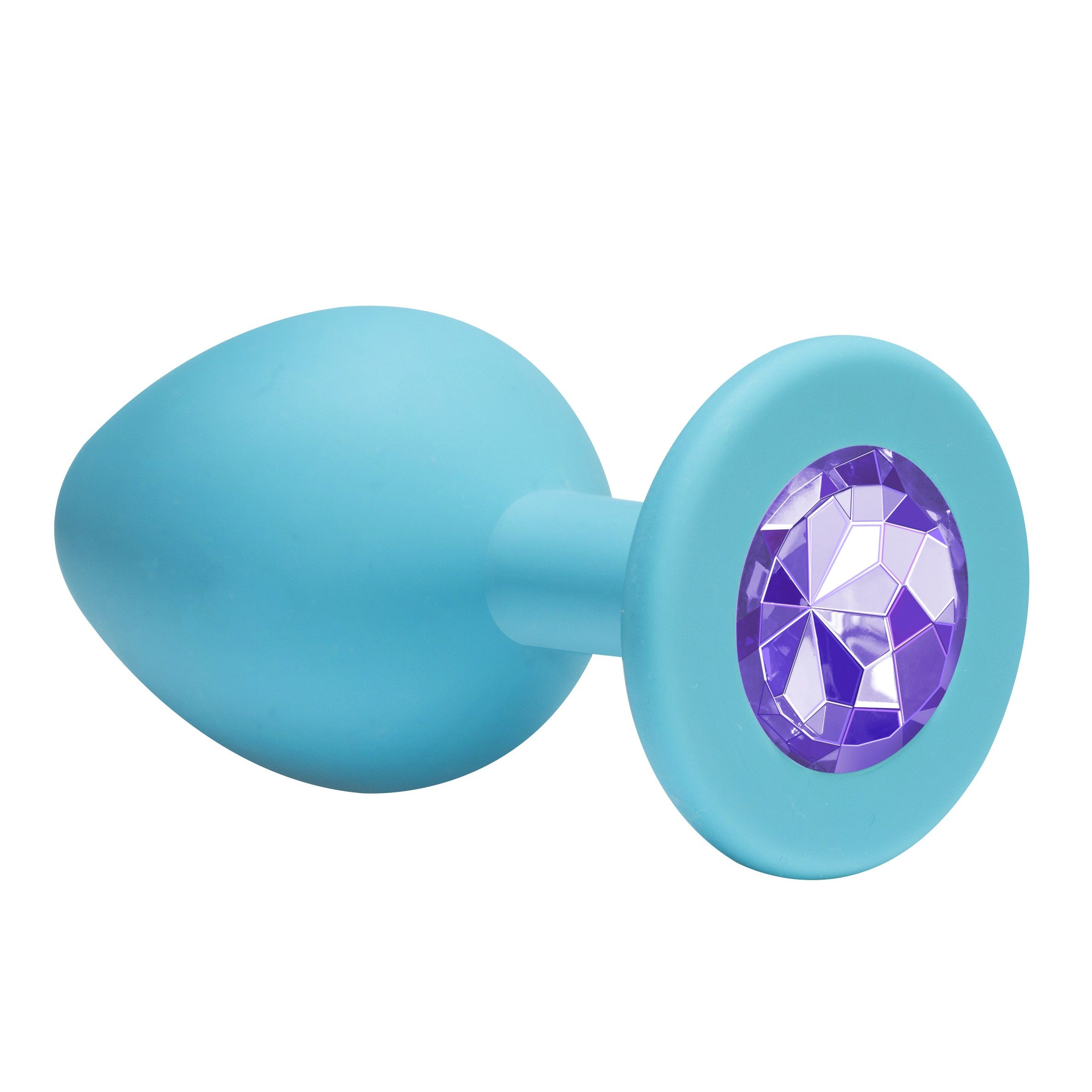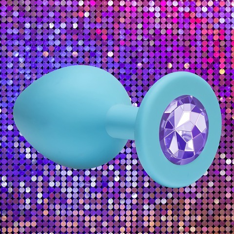 Голубая анальная пробка Cutie Small с фиолетовым кристаллом - 7,5 см.