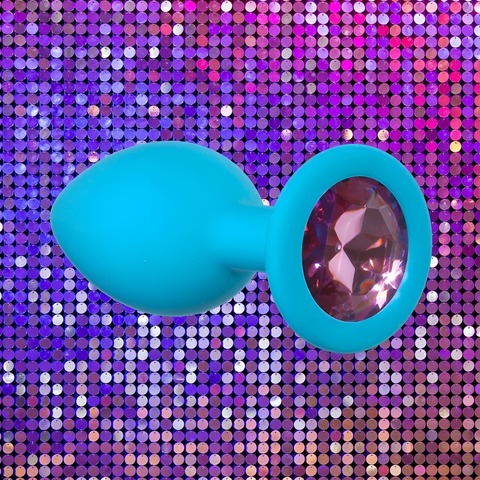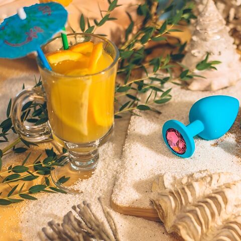 Голубая анальная пробка Cutie Small с розовым кристаллом - 7,5 см.