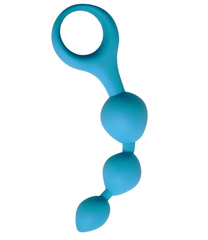Голубая анальная цепочка Anal Chain с ручкой-кольцом. Медицинский силикон. Рабочая длина - 9 см.