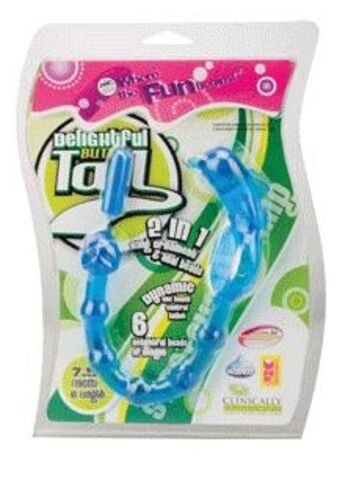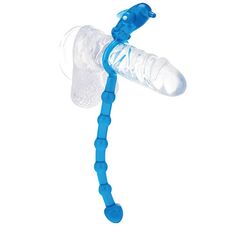 Голубое эрекционное кольцо с анальной цепочкой для него и вибродельфином для неё DELIGHTFUL BUTT TAIL. Длина анальной цепочки - 14 см.
