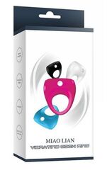 Белое эрекционное виброкольцо Miao Lian. Широкая часть предназначена для усиления ощущений и стимуляции клитора партнерши.