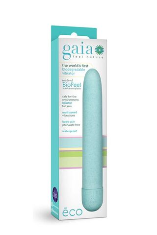 Gaia Eco - первый в мире биоразлагаемый и перерабатываемый вибратор! Eco производится из Biofeel - пластика на основе крахмала. Дизайн Eco является классическим и может использоваться для внутренней или внешней стимуляции: включая тонкий профиль и конический наконечник для комфорта. Благодаря тихим многоскоростным вибрациям легко найти свое идеальное ощущение. Эта игрушка безопасна для тела и легко чистится! Просто мыть теплым мылом и водой или любимым чистящим средством перед и после каждого использования. Рабочая длина - 14,6 см.