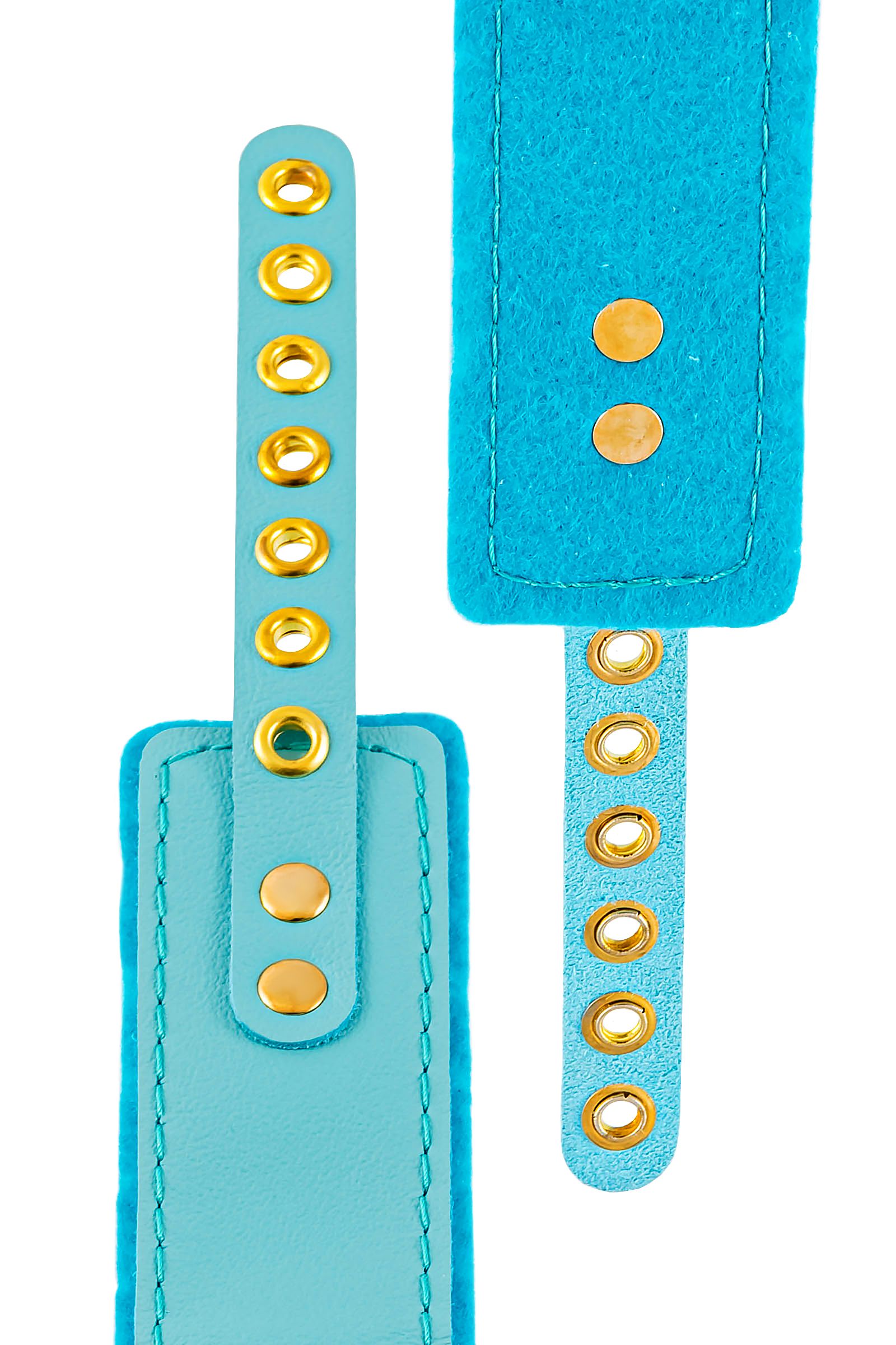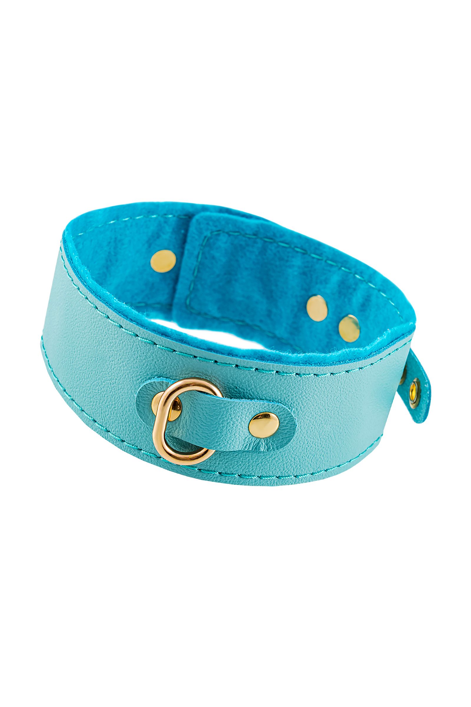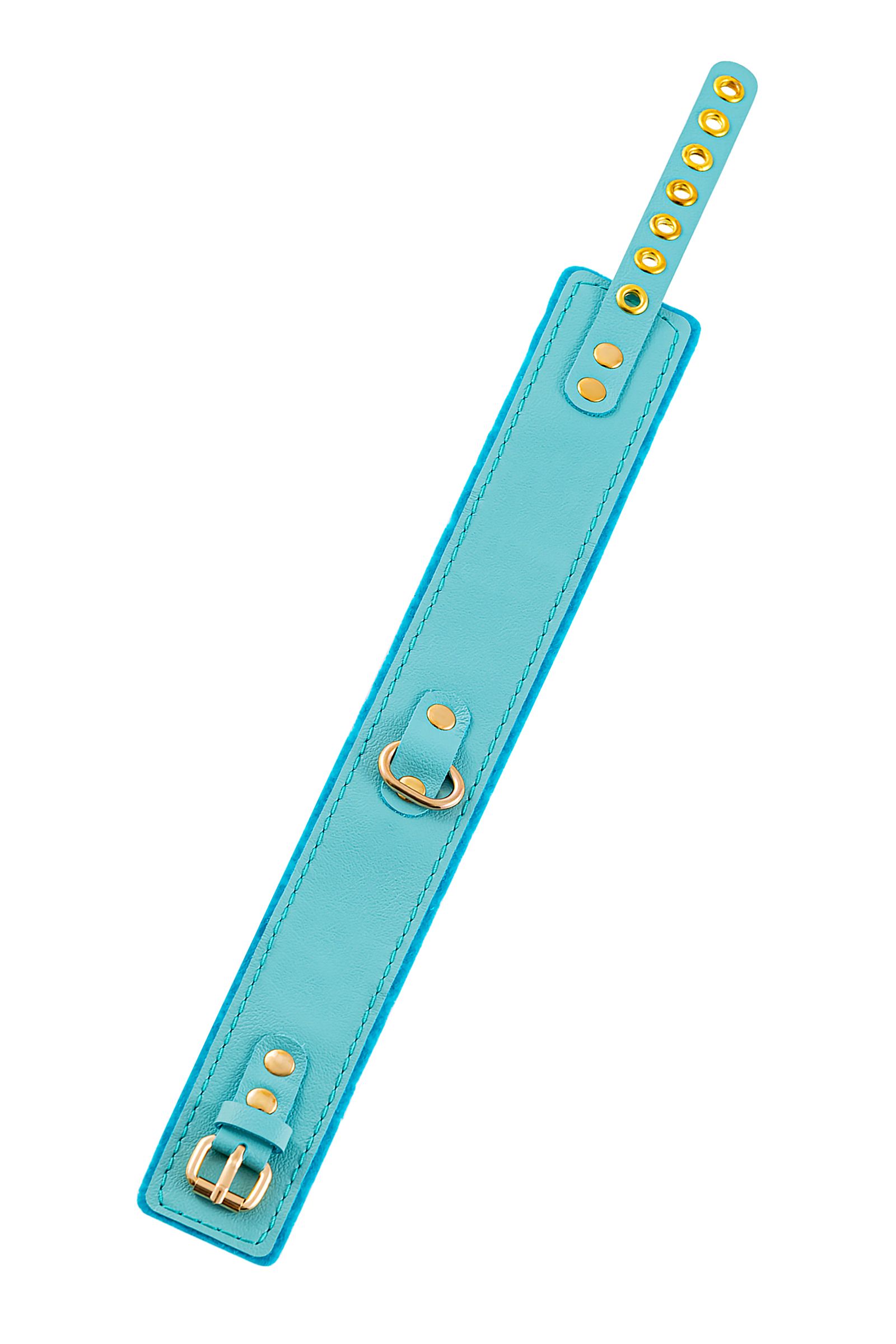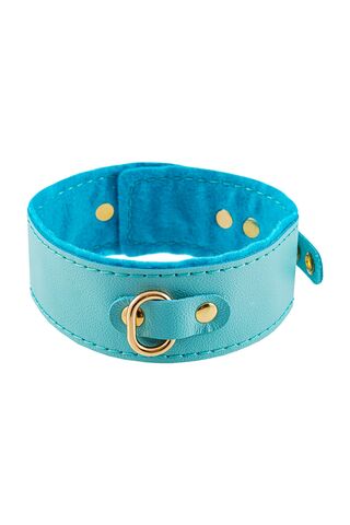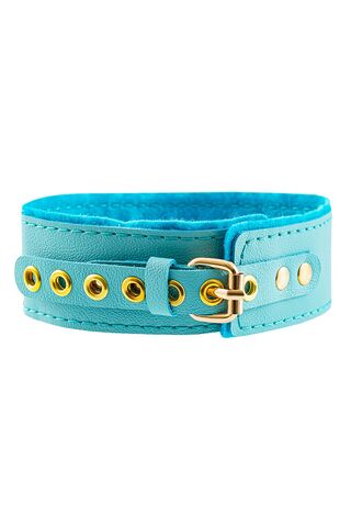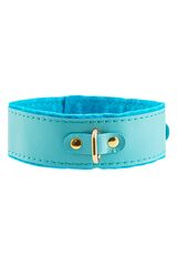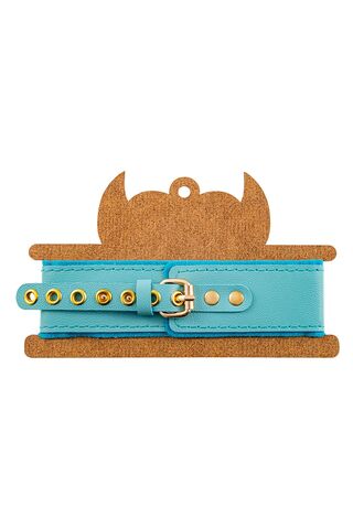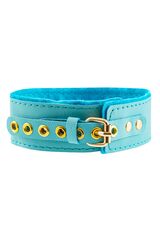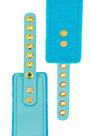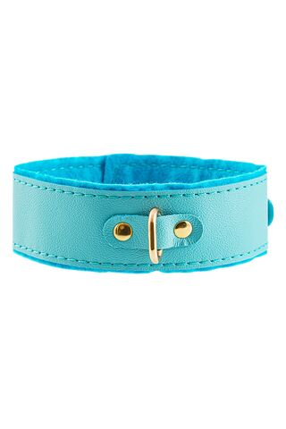 Голубой двуслойный кожаный ошейник с подкладкой из фетра
