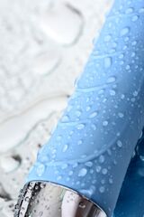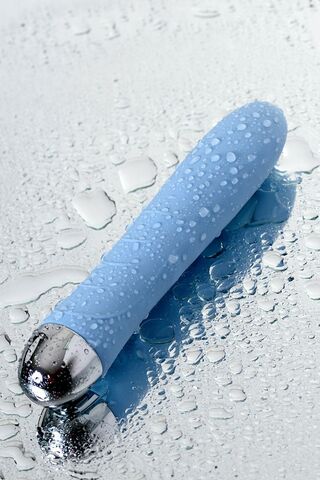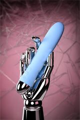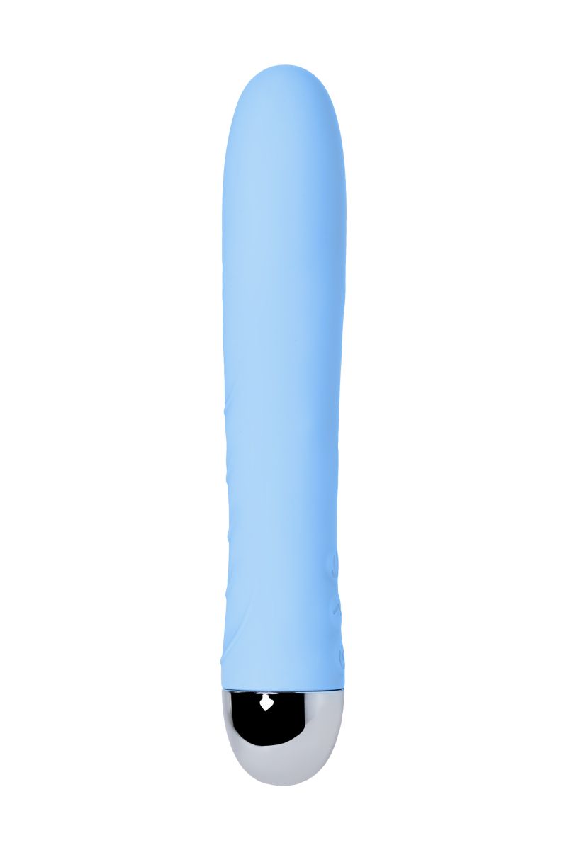 Голубой силиконовый вибратор с функцией нагрева и пульсирующими шариками FAHRENHEIT - 19 см.