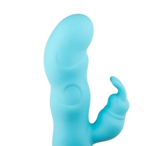 Голубой вибратор Design for Climax с клиторальным кроликом. 10 режимов вибрации. Водонепроницаемый. Рабочая длина - 11,5 см.