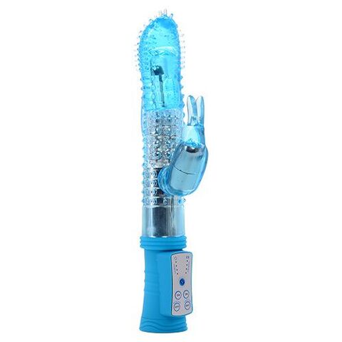 Голубой вибратор с рельефом и клиторальным зайчиком MAGIC TALES BLUE RABBIT.