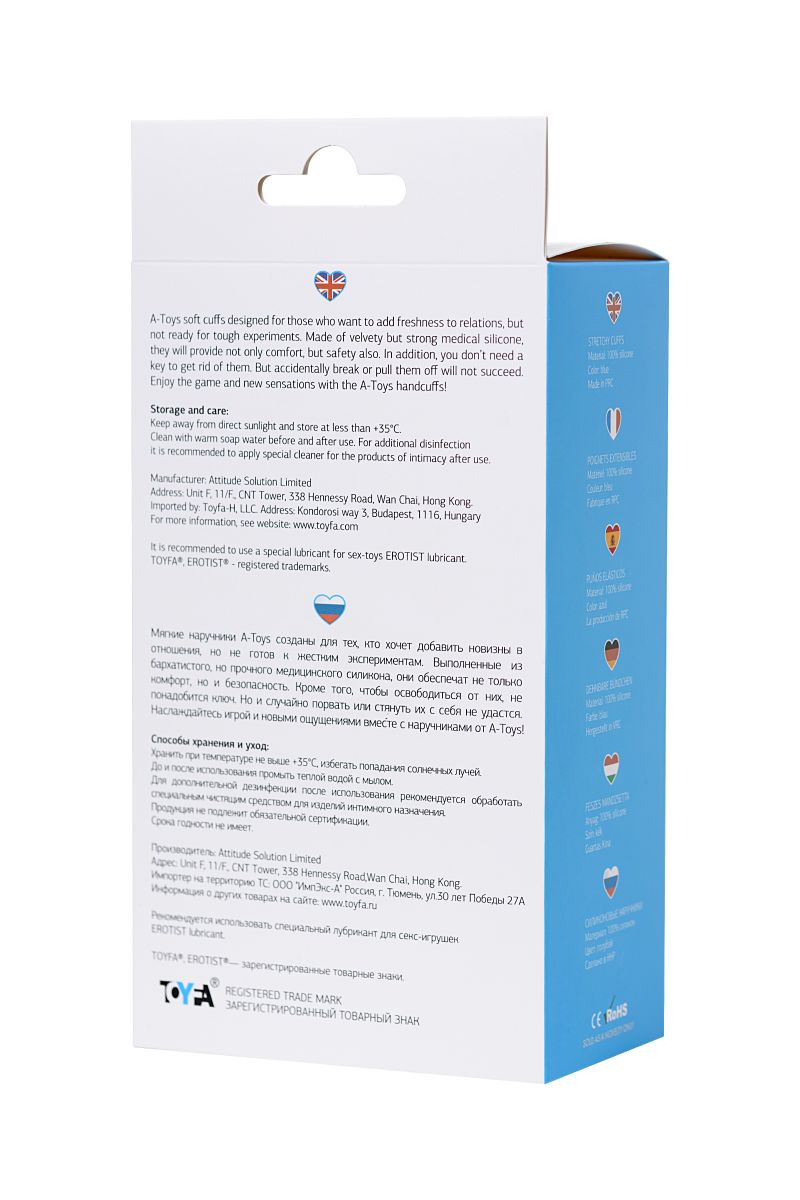 Голубые силиконовые наручники A-Toys без ключа