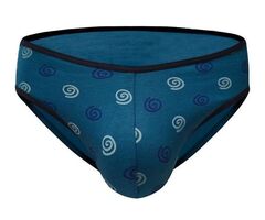Голубые трусы-слипы с принтом в виде завитков.