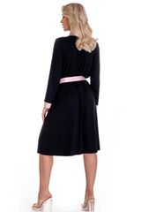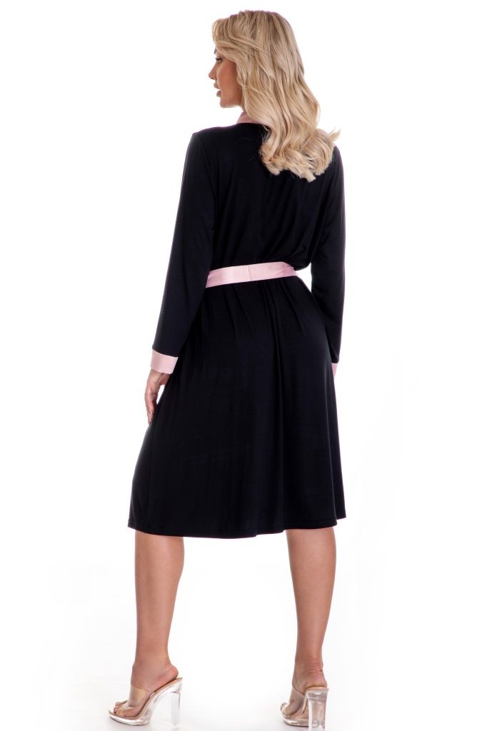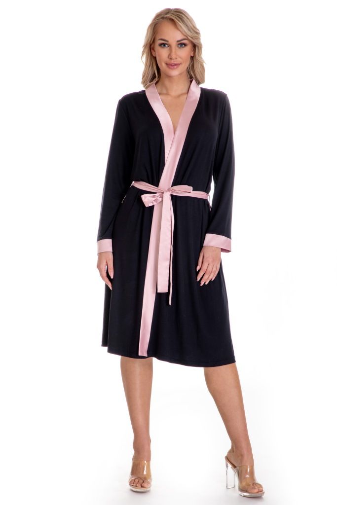 Халат Dream черный с длинным рукавом, окантовка полочек, пояс и низ рукавов из ткани контрастного цвета.