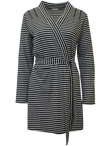 Халат-кардиган из мягкой ткани с хлопком, в модной, полосатой гамме. Комфортная и нарядная одежда для дома. Нашивные карманы.