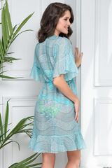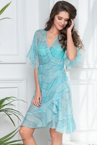 Халат Luciana с коротким рукавом. Выполнен из полупрозрачного фактурного шифона. Низ изделия и низ рукавов декорирован рюшей.