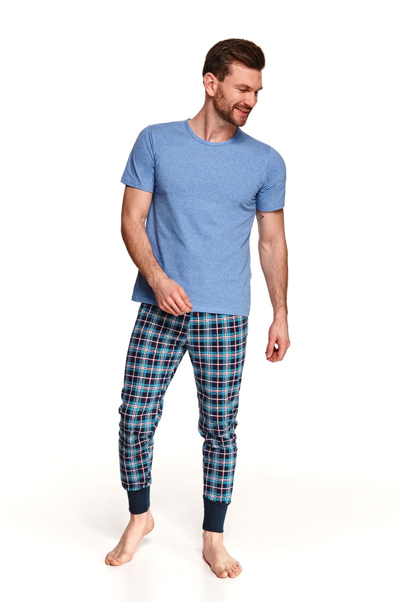 Мужская хлопковая пижама Grzegorz состоит из футболки и клетчатых брюк. Футболка свободного кроя, с круглым вырезом горловины. Брюки на мягкой широкой резинке. Пижама идеально подходит для сна и в качестве домашнего костюма. В комплекте: футболка, брюки.