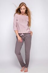Пижама Nessa состоит из лонгслива с рукавами 3/4 с принтом Sensis и штанов. Штаны прямого кроя цвета на мягкой резинке, украшены атласным бантиком. В комплекте: лонгслив, брюки.
