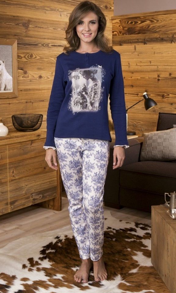 Пижама женская из хлопкового трикотажа. Кофта с длинными рукавами и брюки. В комплекте: кофта, брюки.