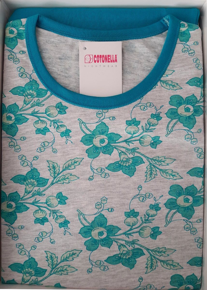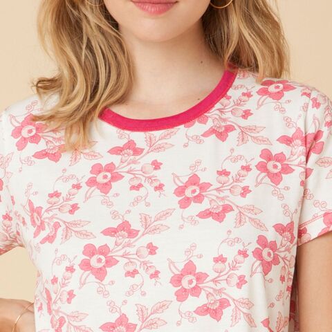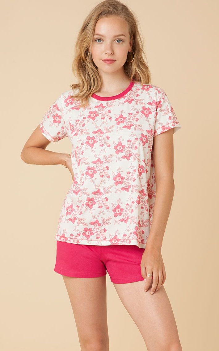 Женская трикотажная пижама из хлопка. Набивная майка с коротким рукавом с контрастной отделкой выреза горловины и контрастные гладкие шорты. В комплекте: футболка, шорты.