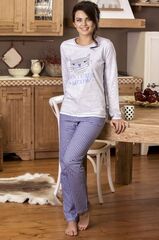 Пижама женская из хлопкового трикотажа. Кофта с длинными рукавами, с принтом и брюки. В комплекте: кофта, брюки.