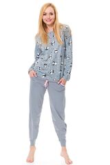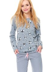 Молодежная пижама состоит из кофты свободного кроя с длинным рукавом и штанов с резинкой-манжетом по низу. Кофта декорирована принтом панда . В комплекте: кофта, штаны.