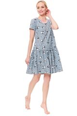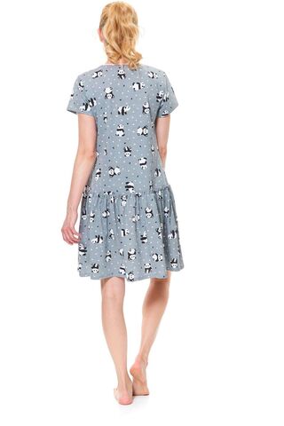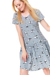 Хлопковая сорочка с принтом панда . Модель свободного силуэта с заниженной талией и пышной широкой оборкой.
