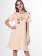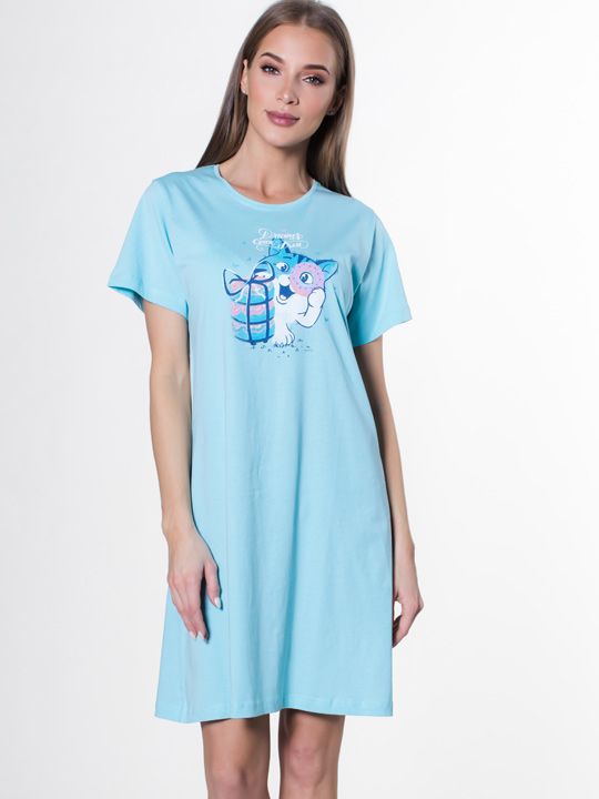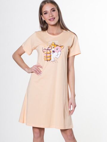 Трикотажная туника из однотонной ткани с коротким рукавом с принтом впереди.