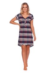 Сорочка выполнена из хлопкового полотна в крупную клетку. Модель свободного кроя, с V-образным вырезом горловины и планкой на кнопках. Идеальный вариант не только для сна, но и для домашнего отдыха.