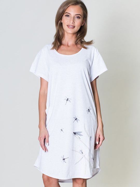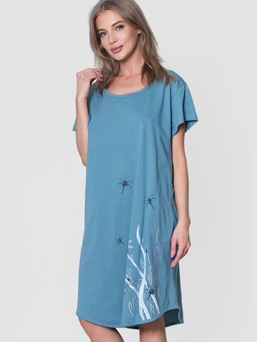 Трикотажная туника с коротким рукавом, из однотонной ткани с принтом впереди.