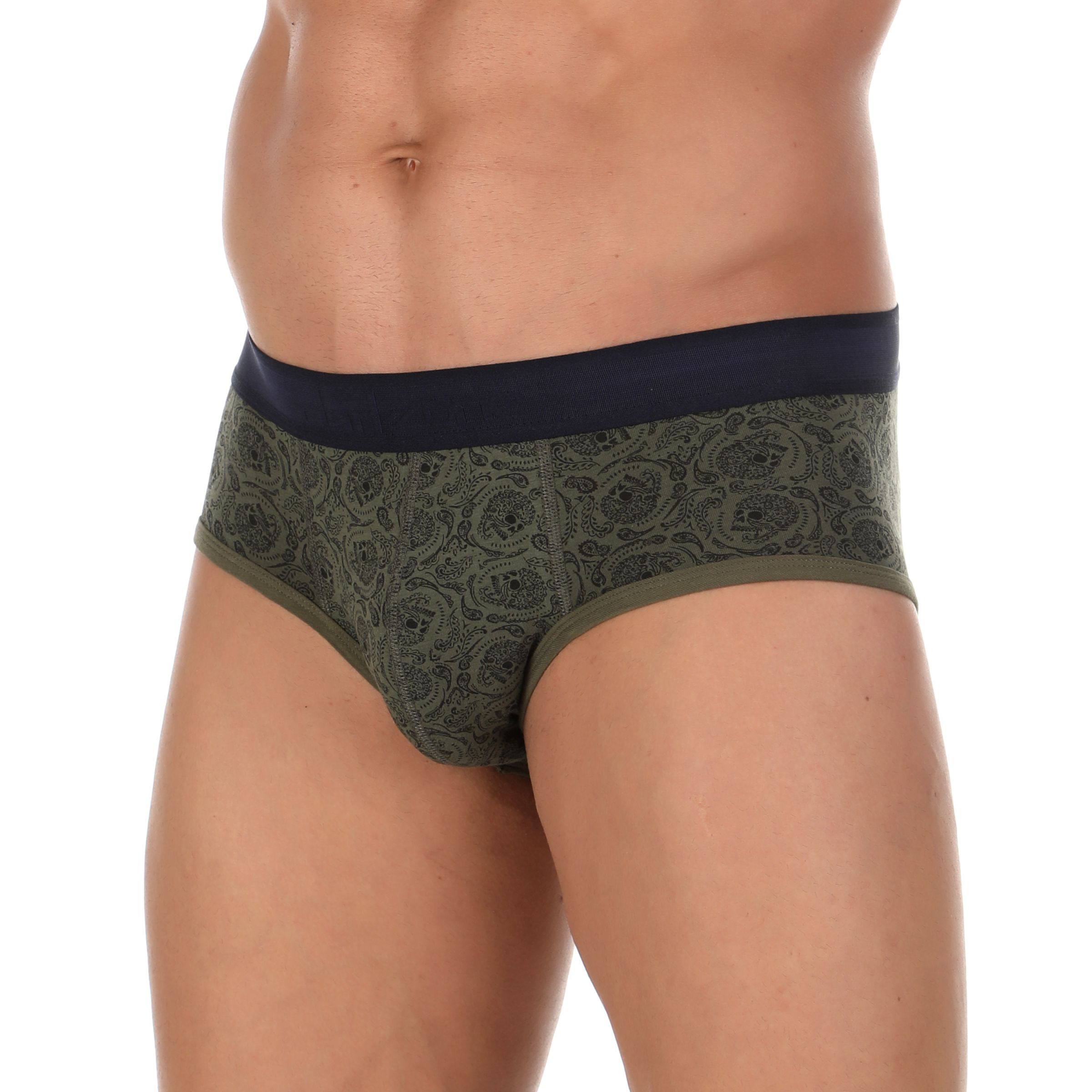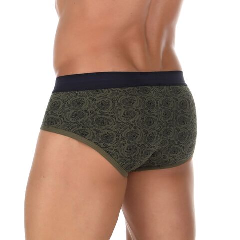 Хлопковые трусы-брифы цвета хаки с принтом-пейсли.