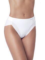 Трусы-утяжки с завышенной линией талии из хлопковой ткани. Высота бочка 10 см. Уровень коррекции Medium: утягивающий эффект в области живота и поясницы. Имеют анатомическую посадку за счет сборки по заднему шву и бесшовный край по линии открытия ноги. Ластовица выполнена из уникального хлопкового материала.