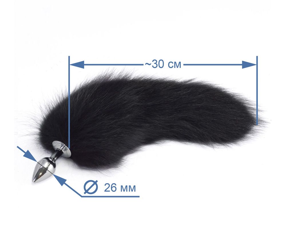 Анальный хромированный плуг с натуральным пушистым хвостиком. Длина хвоста - 30 см.