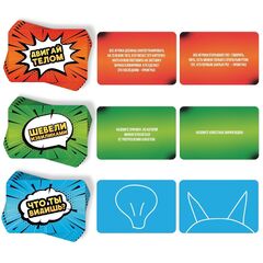 Для начала разделите карты на 3 колоды: «Двигай телом», «Что ты видишь?» и «Шевели извилиной». Кубик поместите рядом с колодами. Осталось только определить очерёдность хода и начать игру!