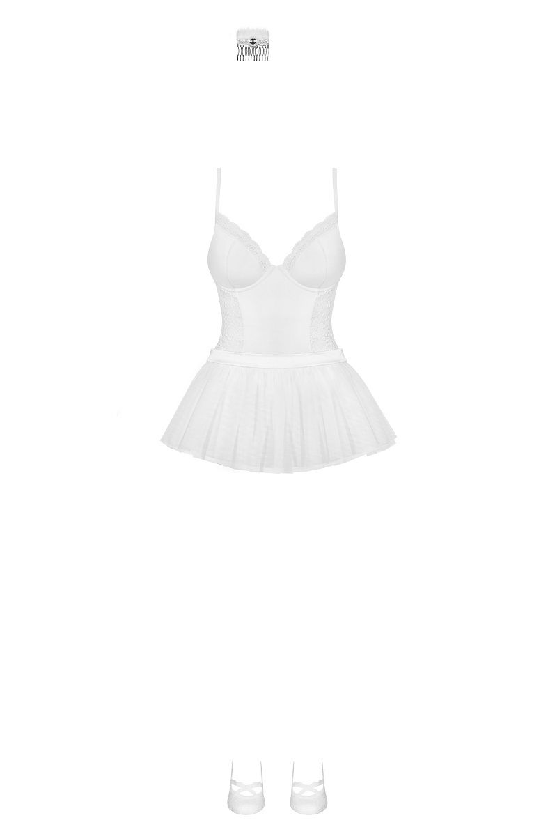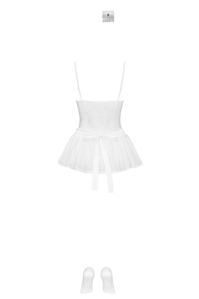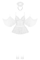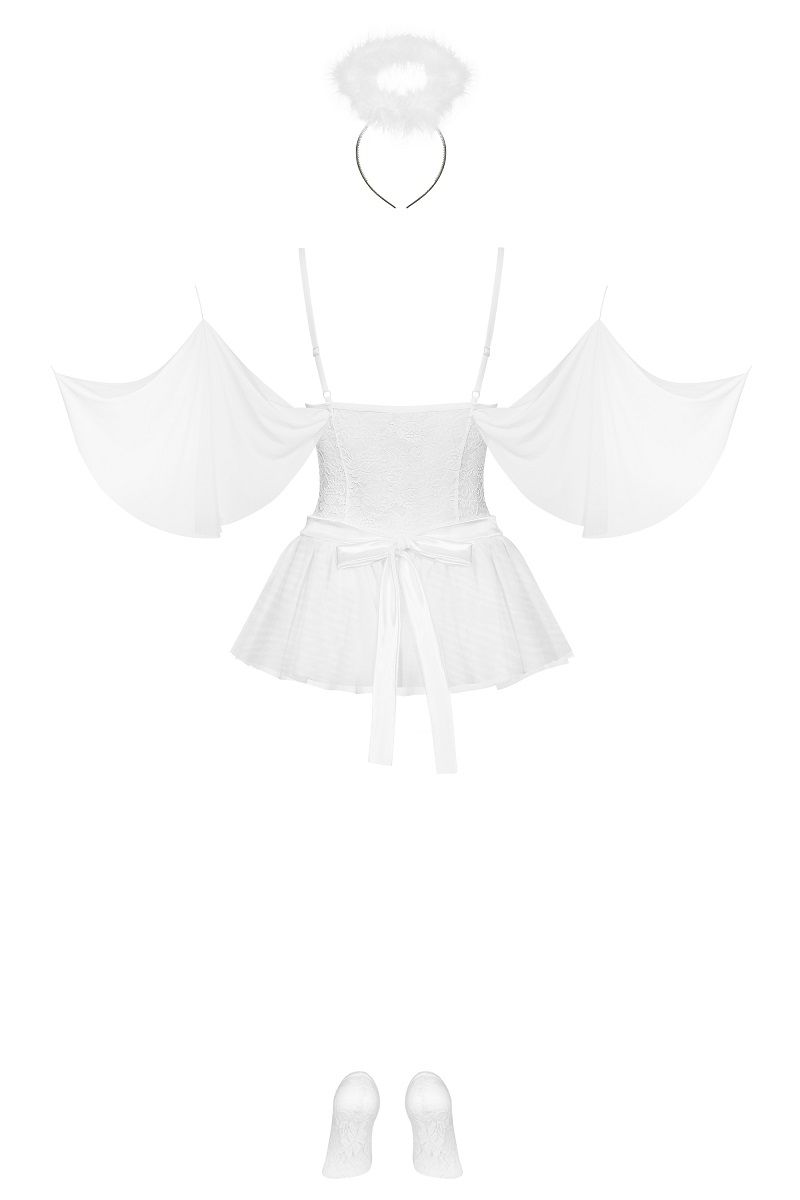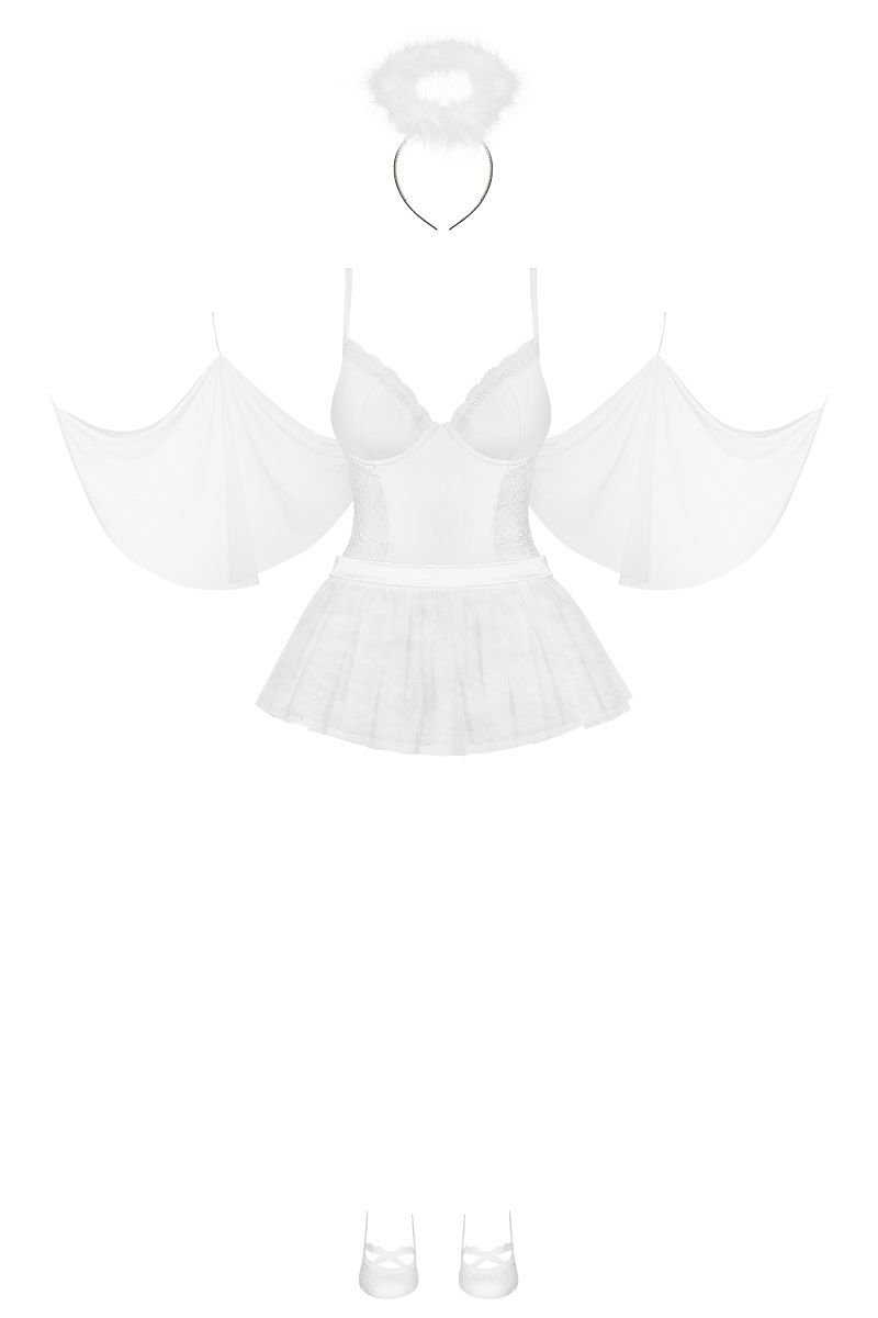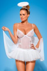 Игровой комплект-трансформер Swangel: нимб, боди, юбочка, кружевные балетки и пелерина-крылья сделают вас ангелом. Сняв крылья и нимб и сделав высокую прическу, вы превратитесь в балерину. Оставшись только в боди, вы покорите любимого пленительными изгибами фигуры. В комплекте: боди, юбка, нимб, балетки, пелерина-крылья.