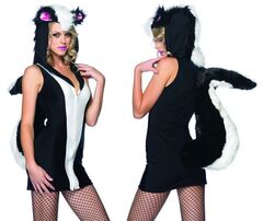 Очаровательный костюмчик превратит вас в игривого скунса. В комплекте: платье на молнии, плюшевый капюшон с ушками и пушистый гибкий хвост. В комплекте: платье, капюшон, хвост.